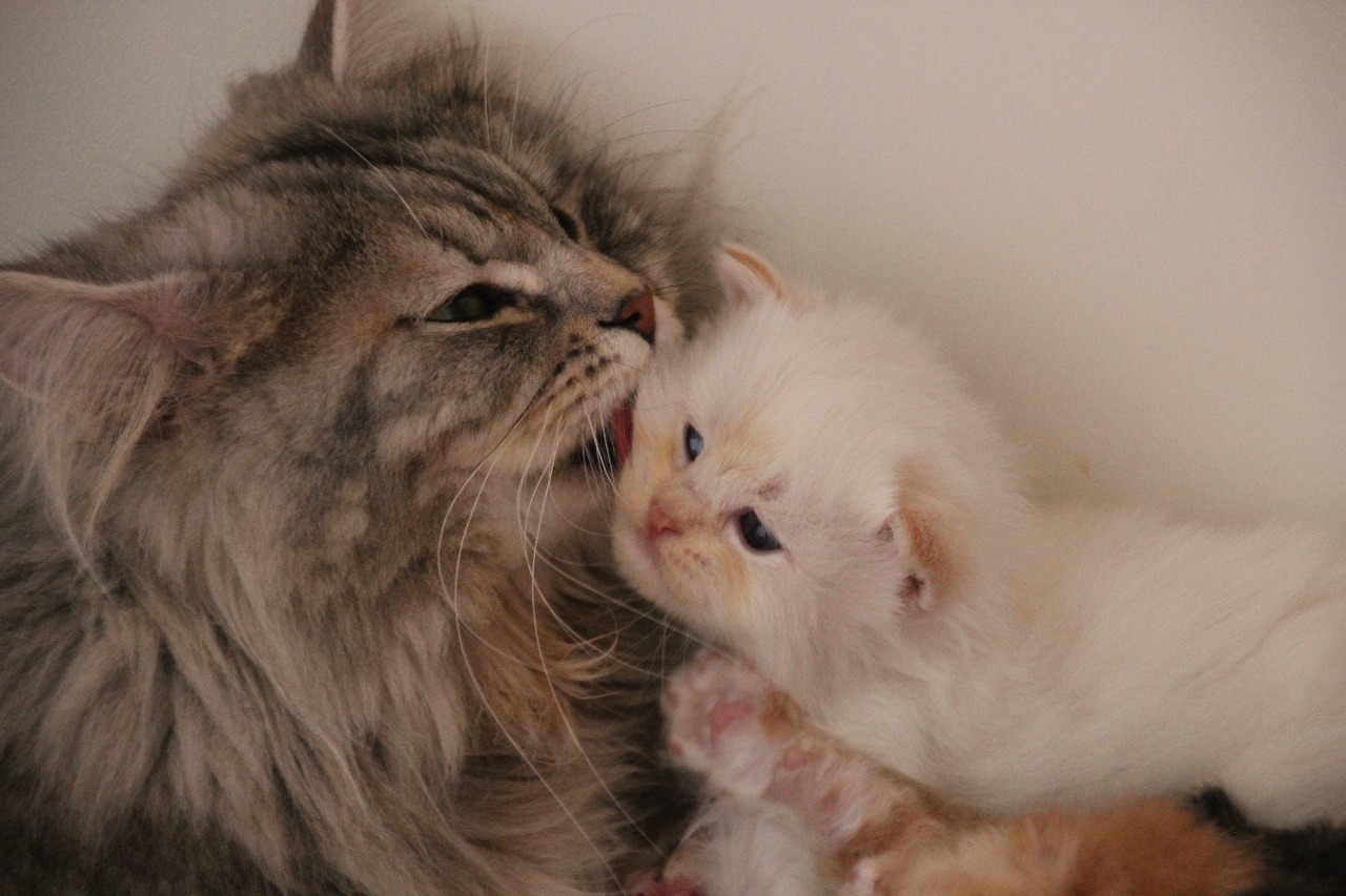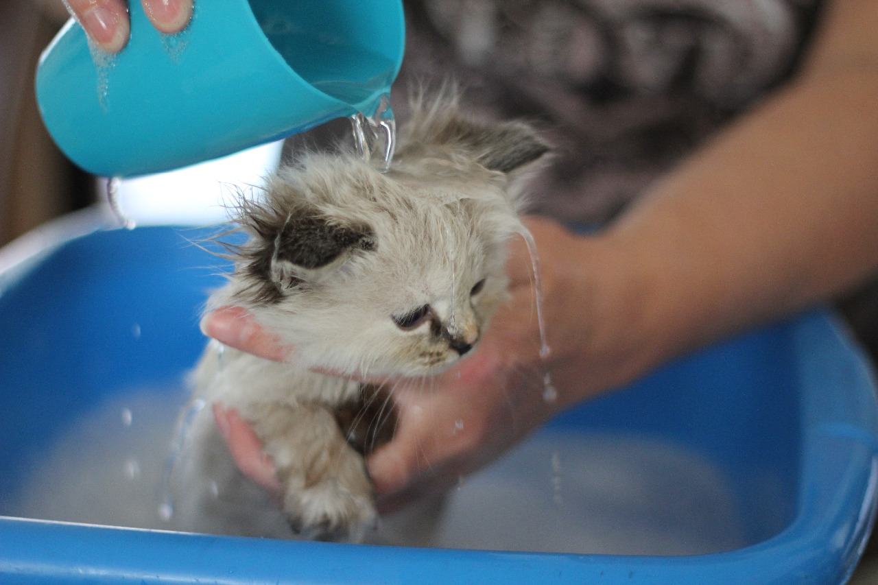 Met ongeveer 5 weken leer ik mijn kittens dat ze af en toe in het bad moeten. Ze doen dit altijd erg goed. Siberen hebben een lange vacht en eigenlijk al mijn katten kan ik als het nodig is een bad geven. Vooral Fabio mijn dekkater vind dit zelfs heel erg lekker!